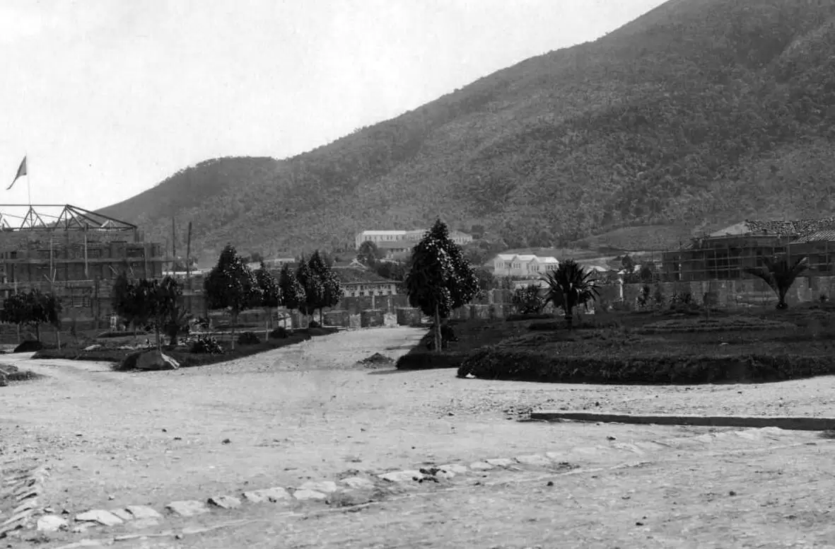 Arquitetura assinada por Eduardo Vasconcelos Pederneiras (com paisagismo). Hotel reinaugurado em 1930 junto ao cassino; o Palace Cassino abre em 1931.