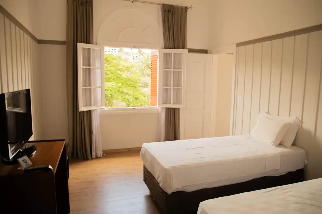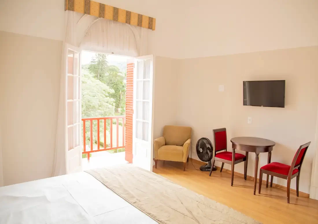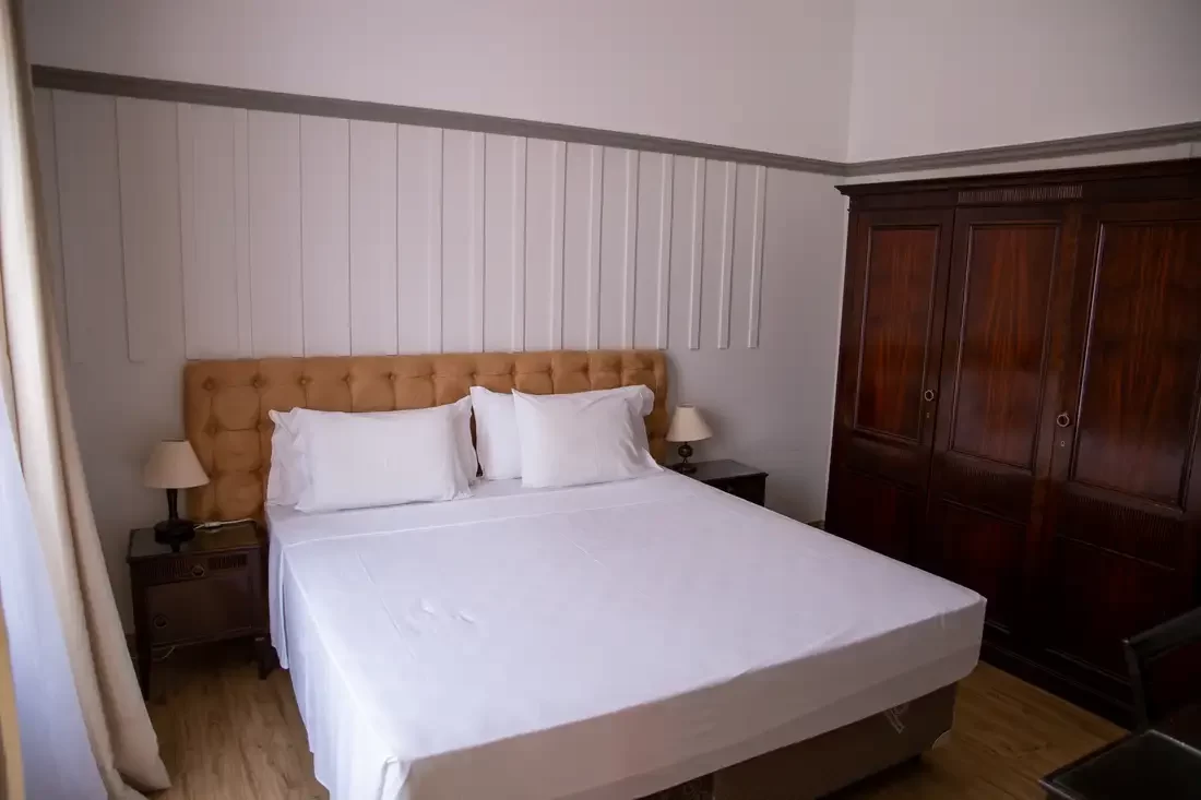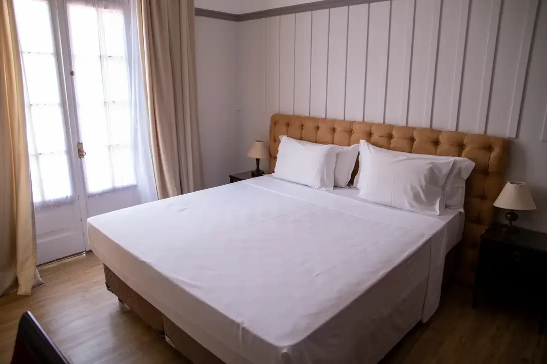 A Suíte Luxo Casal são para quem preza pelo conforto, com muito charme e elegância, todos com piso de madeira, antessala, varanda e pode oferecer uma vista deslumbrante para as praças do entorno do Hotel. Disponíveis somente com a opção de uma cama casal e equipada com TV, Wi-Fi, frigobar e banho privado com amenities.